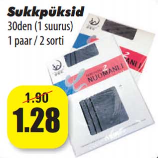 Период кампании: 15.11.2013 - 28.11.2013 Цена: 1.28€ Колготки 30den (один размер) 1 пара / два сортаSukkpüksid