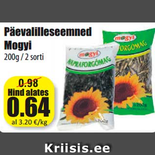 Период кампании: 07.03.2014 - 13.03.2014 Цена: 0.64€ Семечки подсолнуха Mogyi200g / 2 sorti Päevalilleseemned