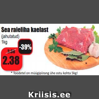 Период кампании: 17.04.2014 Цена: 2.38€ Шейный карбонад* Товар ограничен для покупки в одну корзину 5 кг! Sea raieliha kaelast (jahutatud) 1k