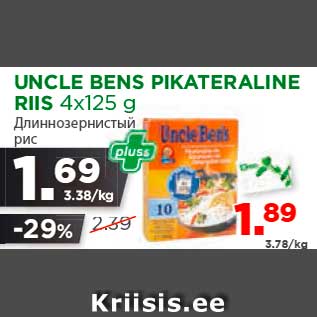 Период кампании: 16.04.2014 - 29.04.2014 Цена: 1.69€ Длиннозернистый рис4x125 g UNCLE BENS PIKATERALINE