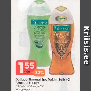 Период кампании: 16.04.2014 - 04.05.2014 Цена: 1.55€ Гель для душаPalmolive, 250 ml Dušigeel Thermal Spa Turkish Bath või Ayurituel Energy