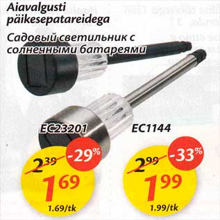 Период кампании: 22.04.2014 - 28.04.2014 Цена: 1.69€ Садовый светильник с солнечными батареямиAiavalgusti päikesepatareidega