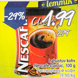 Период кампании: 28.04.2014 - 04.05.2014 Цена: 1.99€ Растворимый кофеLahustuv kohv Nescafe Classic, 100 g