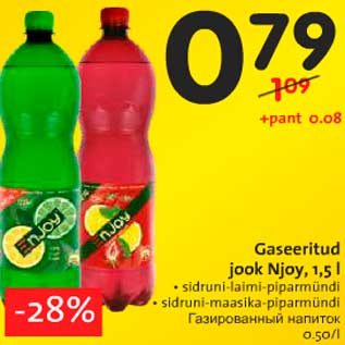 Период кампании: 07.05.2014 - 20.05.2014 Цена: 0.79€ Газированный напитокGaseeritud jook Njoy, 1,5 l