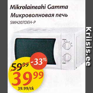Период кампании: 22.07.2014 - 28.07.2014 Цена: 39.99€ Микроволновая печьSMH207DEH-P Mikrolaineahi Gamma