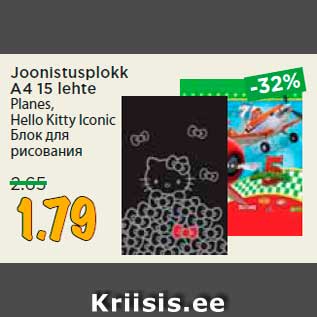 Период кампании: 06.08.2014 - 07.09.2014 Цена: 1.79€ Блок для рисованияPlanes, Hello Kitty Iconic Joonistusplokk