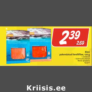 Период кампании: 17.09.2014 - 29.09.2014 Цена: 2.39€ Филе форелиRimi pakendatud forellifilee