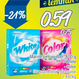 Период кампании: 29.09.2014 - 05.10.2014 Цена: 0.59€ Стиральный порошок.White .Color Marine prsupulber, 400 g