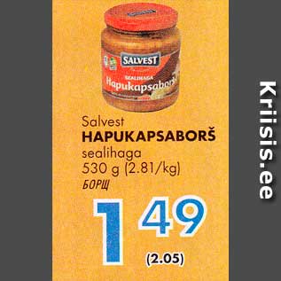 Период кампании: 06.10.2014 - 12.10.2014 Цена: 1.49€ БОРЩsealihaga 530 g SALVEST HAPUKAPSABORŠ