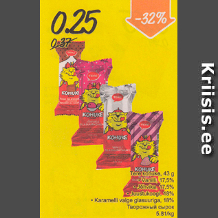 Период кампании: 02.02.2015 - 08.02.2015 Цена: 0.25€ Творожный сырок.Vanilli,17,5% .Jõhvika,17,5% .Juustukoogi,18% Tere kohuke, 43 g