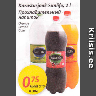 Период кампании: 03.03.2015 - 09.03.2015 Цена: 0.75€ Прохладительный напитокOrange, Lemon, Cola Karastusjook Sunlife, 2 l