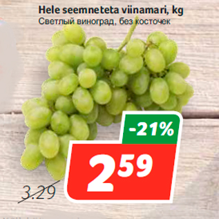 Период кампании: 06.03.2015 - 08.03.2015 Цена: 2.59€ Светлый виноград, без косточекHele seemneteta viinamari, kg