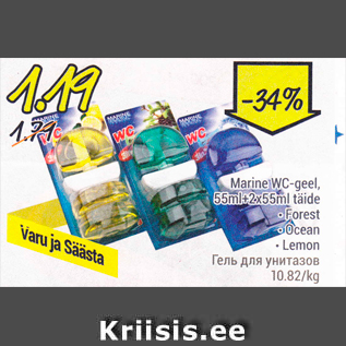 Период кампании: 09.03.2015 - 15.03.2015 Цена: 1.19€ Гель для унитазов55ml+5x55ml täide .Forest .Ocean .Lemon Marine WC-geel