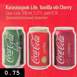Период кампании: 31.03.2015 - 13.04.2015 Цена: 0.75€ Прохладительный напитокCoca-Cola, 330 ml Karastusjook Life, Vanilla või Cherry