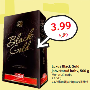 Период кампании: 07.04.2015 - 13.04.2015 Цена: 3.99€ Молотый кофекроме Viljandi и Magistrali Rimi Luxus Black Gold