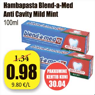 Период кампании: 17.04.2015 - 30.04.2015 Цена: 0.98€ Зубная пастаHambapasta Blend-a-Med Anti Cavity Mild Mint