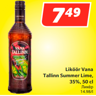Период кампании: 28.07.2015 - 03.08.2015 Цена: 7.49€ Ликёр35%, 50 cl Liköör Vana