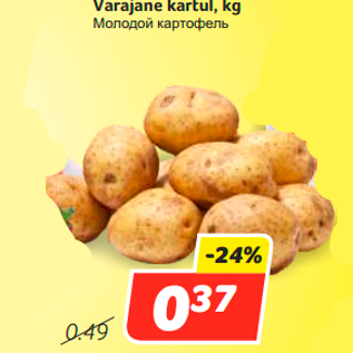 Период кампании: 11.08.2015 - 17.08.2015 Цена: 0.37€ Молодой картофельVarajane kartul, kg