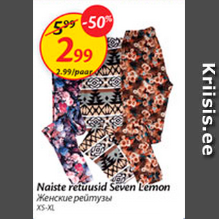 Период кампании: 18.08.2015 - 24.08.2015 Цена: 2.99€ Женские рейтузыXS-XL Naiste retuusid Seven Lemon