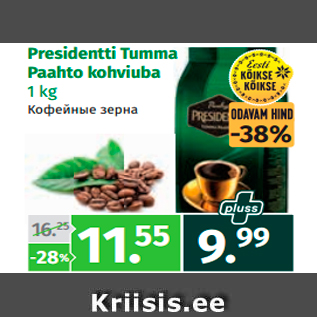 Период кампании: 16.09.2015 - 06.10.2015 Цена: 9.99€ Кофейные зернаPresidentti Tumma