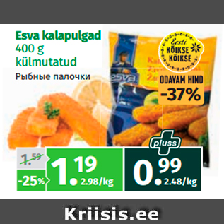 Период кампании: 16.09.2015 - 06.10.2015 Цена: 0.99€ Рыбные палочкиkülmutatud Esva kalapulgad