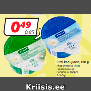 Период кампании: 13.10.2015 - 19.10.2015 Цена: 0.49€ Зерненый творог• hapukoore ja tilliga