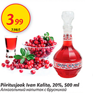Период кампании: 27.10.2015 - 02.11.2015 Цена: 3.99€ Алкогольный напиток20%, 500 ml Piiritusjook Ivan Kalita Kriisis.ee не несёт ответственности за содержание комментариев. Мнение автора комментария может отличаться от мнения kriisis.ee. По возможности, отслеживая комментарии, kriisis.ee оставляет за собой право удалять их без объяснения причин. Если вы заметили неуместный комментарий, пожалуйста сообщите нам о нём.