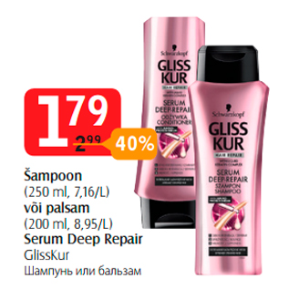 Товар шампунь или бальзам продавался со скидкой в магазине Selver в период с 03.11.2015 по 16.11.2015 по цене 1.79 евро.