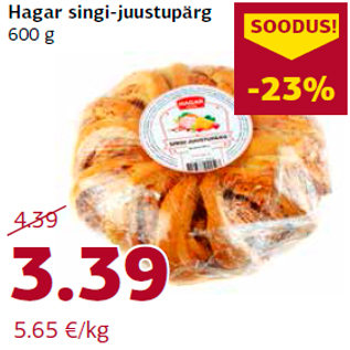Период кампании: 19.11.2015 - 29.11.2015 Цена: 3.39€ Венок с ветчиной и сыромHagar singi-juustupärg