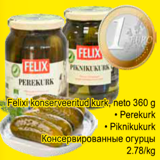 Период кампании: 23.11.2015 - 29.11.2015 Цена: 1.00€ Консервированные огурцыFelixi konserveeritud kurk