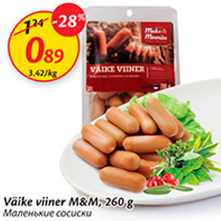 Период кампании: 01.12.2015 - 07.12.2015 Цена: 0.89€ Маленькие сосискиVäikeviiner M&M