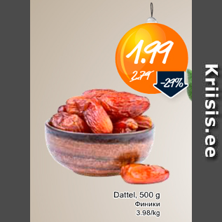 Продукт финики продавался со скидкой в магазине Säästumarket в период с 28.12.2015 по 03.01.2016 по цене 1.99 евро.
