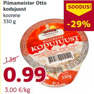 Период кампании: 21.01.2016 - 31.01.2016 Цена: 0.99€ Творогkoorene, 330 g Piimameister Otto
