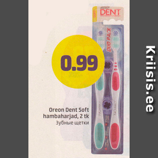 Период кампании: 29.02.2016 - 06.03.2016 Цена: 0.99€ Зубные щеткиOreon Dewnt Soft hambaharjad, 2 tk
