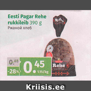 Период кампании: 16.03.2016 - 05.04.2016 Цена: 0.45€ Ржаной хлебEesti Pagar rukkileib 390 g