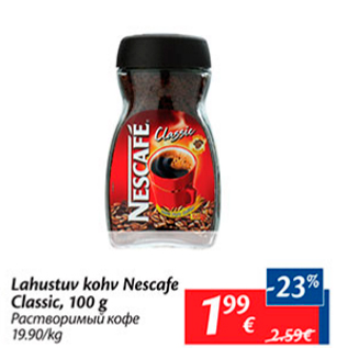 Период кампании: 29.03.2016 - 04.04.2016 Цена: 1.99€ Растворимый кофеLahustuv kohv Nescafe Classic, 100 g