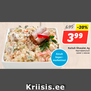 Период кампании: 07.06.2016 - 13.06.2016 Цена: 3.99€ Картофельный салат с мясомKartuli-lihasalat, kg