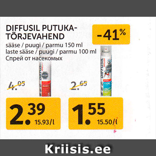 laste sääse / puugi / parmu 100 ml DIFFUSIL PUTUKATÕRJEVAHEND