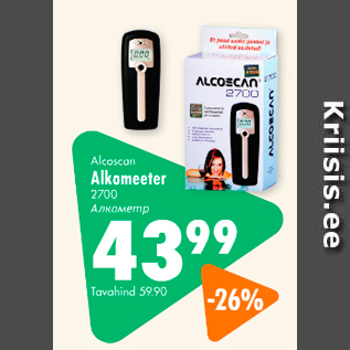Период кампании: 13.06.2016 - 26.06.2016 Цена: 43.99€ АлкометрAlkoskon Alkomeeter 2700