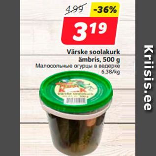 Период кампании: 21.06.2016 - 27.06.2016 Цена: 3.19€ Малосольные огурцы в ведеркеVärske soolakurk
