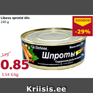 Период кампании: 07.07.2016 - 17.07.2016 Цена: 0.85€ Шпроты в маслеLibava sprotid õlis