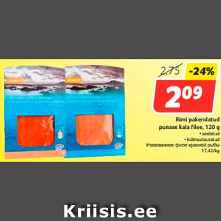 Продукт упакованное филе красной рыбы продавался со скидкой в магазине Hüper Rimi, Rimi в период с 02.08.2016 по 08.08.2016 по цене 2.09 евро.