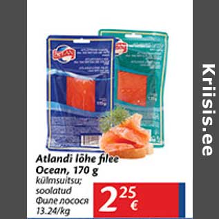 Период кампании: 09.08.2016 - 15.08.2016 Цена: 2.25€ Филе лососяAtlandi lõhe filee Ocean, 170 g