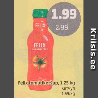 Период кампании: 12.09.2016 - 18.09.2016 Цена: 1.99€ КетчупFelix tomatiketšup, 1,25 kg