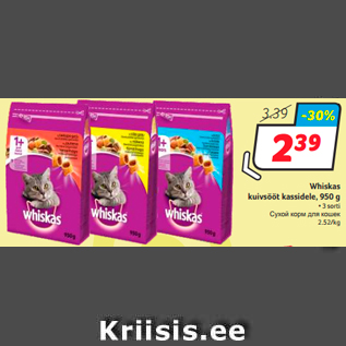 Период кампании: 11.10.2016 - 17.10.2016 Цена: 2.39€ Сухой корм для коше• 3 sorti Whiskas