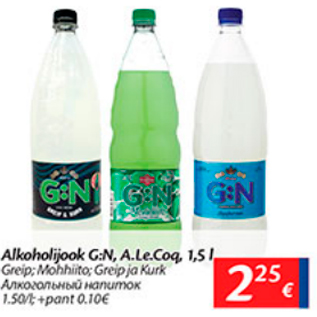Период кампании: 25.10.2016 - 31.10.2016 Цена: 2.25€ Алкогольный напитокGreip; Mohhiito; Greip ja Kurk Alkoholijook G:N, A.Le. Coq, 1,5 l Kriisis.ee не несёт ответственности за содержание комментариев. Мнение автора комментария может отличаться от мнения kriisis.ee. По возможности, отслеживая комментарии, kriisis.ee оставляет за собой право удалять их без объяснения причин. Если вы заметили неуместный комментарий, пожалуйста сообщите нам о нём.