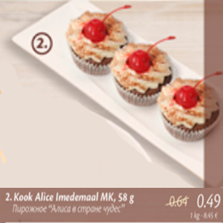 Продукт пирожное "алиса в стране чудес" продавался со скидкой в магазине Maxima Hüpermarket в период с 03.11.2016 по 16.11.2016 по цене 0.49 евро.