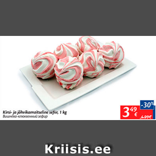 Период кампании: 08.11.2016 - 14.11.2016 Цена: 3.49€ Вишнево-клюквенный зефирKirsi- ja jõhvikamaitseline sefiir, 1 kg