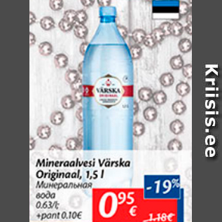 Период кампании: 29.11.2016 - 05.12.2016 Цена: 0.95€ Минеральная водаMarineeritud Värska Originaal, 1,5 l