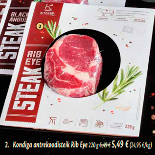 Период кампании: 01.12.2016 - 04.01.2017 Цена: 5.49€ Стейк-антрекотKondiga antrekoodisteik Rib Eye 220 g